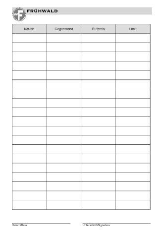 Kat-Nr. Gegenstand Rufpreis Limit _______________________________ ____________________________________ Datum/Date Unterschrift/Signature