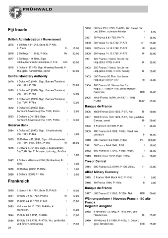 3876 2 Shillings 1.1.1942, P-50a III+ 20,00 3900 50 Francs 14.12.1792, P-A72 III- 15,00