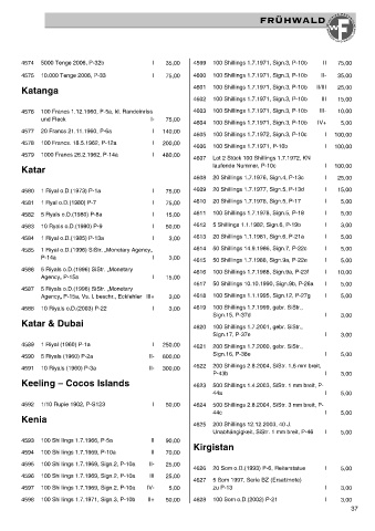 4574 5000 Tenge 2006, P-32b I 35,00 4599 100 Shillings 1.7.1971, Sign.3, P-10b II 75,00