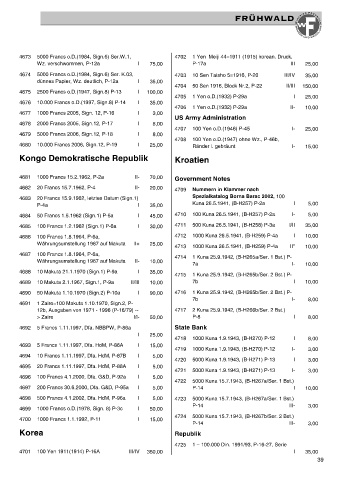 4684 50 Francs 1.5.1962 (Sign.1) P-5a I 45,00 4710 100 Kuna 26.5.1941, (B-H257) P-2a I- 5,00