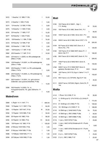 5075 10 Kwacha 1.1.1994, P-25c I 3,00 5101 100 Francs 22.8.1960, Serie D/41, P-2