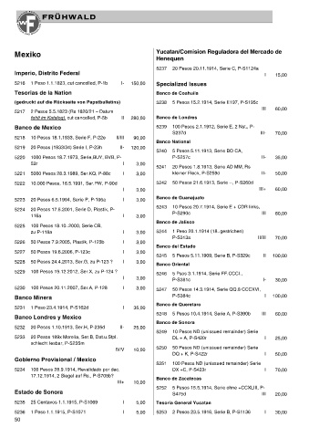 5230 100 Pesos 20.11.2007, Ser.A, P-128 I 3,00 5247 50 Pesos 14.3.1914, Serie QQ.8 CCCXVI,
