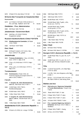 5978 5 Rubel 1918, ohne Serie, P-S1120 III 150,00 5996 1000 Rubel 1920, P-S712 I 25,00