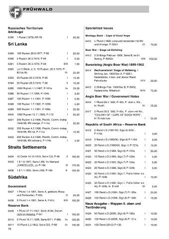 6404 10 Cents 14.10.1919, Serie C/2, P-8b II 100,00 6422 10 Rand o.D.(1993, Sign.7) P-123a I 5,00