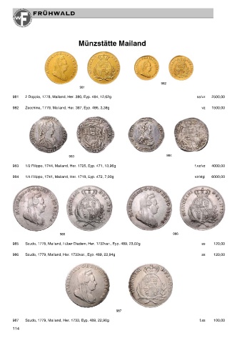 983 1/2 Filippo, 1744, Mailand, Her. 1725, Eyp. 471, 13,96g f.vz/vz 4000,00