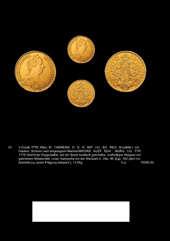 33 4 Dukat, 1778, Wien, M . THERESIA . D . G - R . IMP . HU . BO . REG . Brustbild r. mit