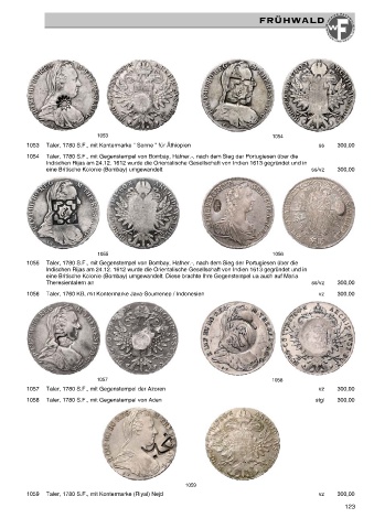 1055 Taler, 1780 S.F., mit Gegenstempel von Bombay, Hafner.-, nach dem Sieg der Portugiesen über die