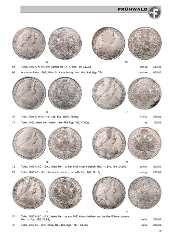 69 Ausbeute-Taler, 1765, Wien, St. Anna Fundgruben, Her. 416, Eyp. 75a f.ss/ss+ 600,00