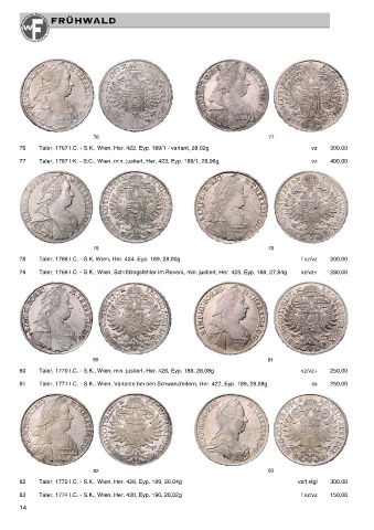 81 Taler, 1771 I.C. - S.K., Wien, Variante bei den Schwanzfedern, Her. 427, Eyp. 189, 28,08g ss 250,00