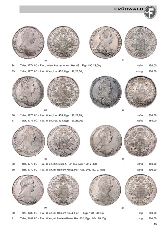 91 Taler, 1781 I.C. - F.A., Wien, mit breitem Kreuz, Her. 437, Eyp. 190a, 28,10g stgl 200,00