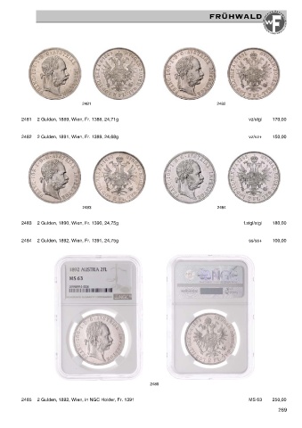 2485 2 Gulden, 1892, Wien, in NGC Holder, Fr. 1391 MS 63 250,00