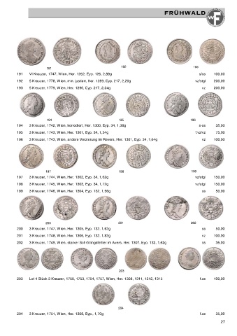 204 3 Kreuzer, 1751, Wien, Her. 1309, Eyp., 1,70g f.ss 35,00