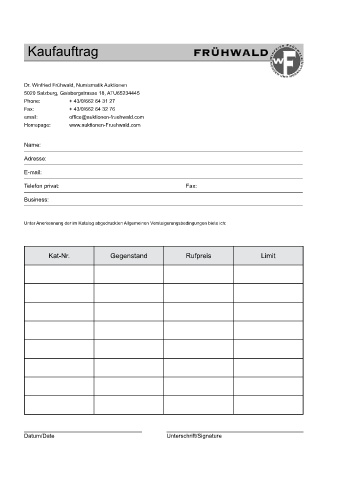 Unter Anerkennung der im Katalog abgedruckten Allgemeinen Versteigerungsbedingungen biete ich: