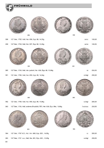 360 1/2 Taler, 1764, Hall, min. justiert, Her. 658, Eyp. 88, 13,98g vz 250,00