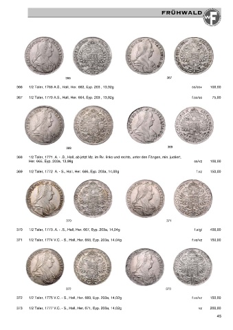 368 1/2 Taler, 1771 .A. - .S., Hall, ab jetzt Mz. im Rv. links und rechts, unter den Fängen, min. justiert,