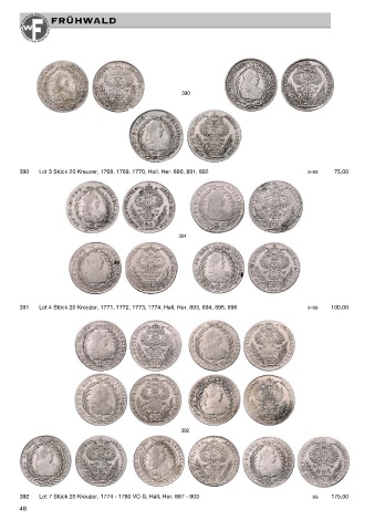 391 Lot 4 Stück 20 Kreuzer, 1771, 1772, 1773, 1774, Hall, Her. 893, 894, 895, 896 s-ss 100,00