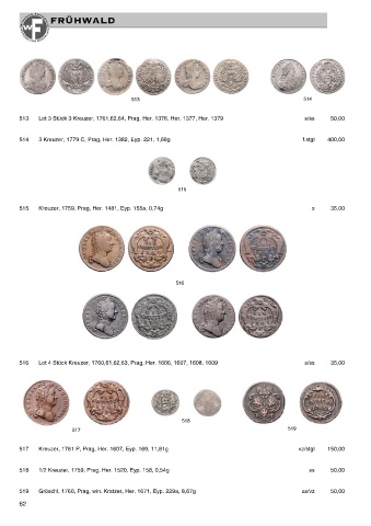 515 Kreuzer, 1759, Prag, Her. 1481, Eyp. 155a, 0,74g s 35,00