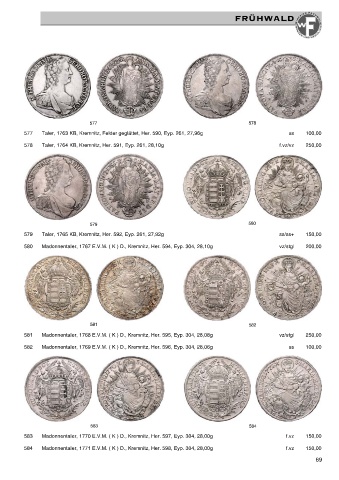 582 Madonnentaler, 1769 E.V.M. ( K ) D., Kremnitz, Her. 596, Eyp. 304, 28,06g ss 100,00