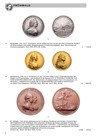 14 Goldmedaille, 1765, von A. Wiedemann, auf den Tod ihres Gatten Franz' I. Drapiertes Brustbild mit