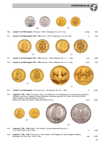 612 Joseph II. als Alleinregent 1780 - 1790, Sovrano, 1790 M, Mailand, Her. 115, 11,08g ss/vz 600
