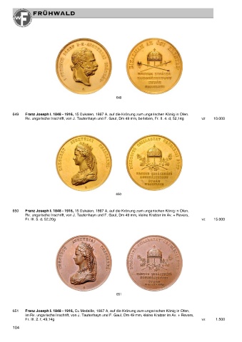 651 Franz Joseph I. 1848 - 1916, Cu Medaille, 1867 A, auf die Krönung zum ungarischen König in Ofen,
