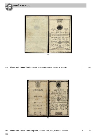 729 729 Wiener Stadt - Banco Zettel, 25 Gulden, 1800, Wien, einseitig, Richter 34, K&K 34a I 400 730 730 Wiener Stadt - Banco - Inflationsgulden, 5 Gulden, 1806, Wien, Richter 39, K&K 41a II 150 116