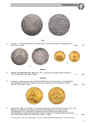 ex Hess Divo AG, Auktion 315, Los 893. Kellner vermerkte in seinem Werk keinen Goldabschlag von diesen Talerstempeln