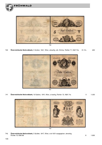 742 Österreichische Nationalbank, 5 Gulden, 1847, Wien, erst 1851 ausgegeben, einseitig,