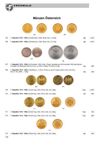 766 1. Republik 1918 - 1938, 20 Zollkronen, 1924, Wien, Her. 4, 6,78g stgl 1.500