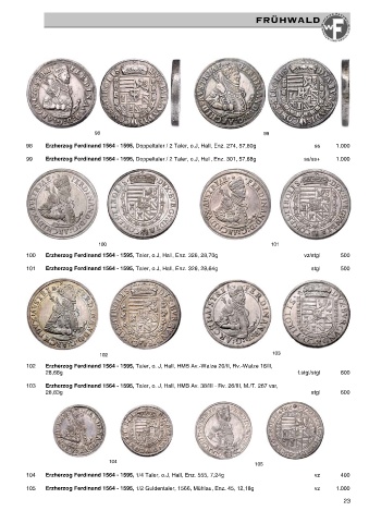99 Erzherzog Ferdinand 1564 - 1595, Doppeltaler / 2 Taler, o.J, Hall, Enz. 301, 57,68g ss/ss+ 1.000