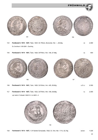 156 Ferdinand II. 1619 - 1637, Taler, 1625, St.Pölten, Her. 405, 28,62g vz/f.vz 2.000