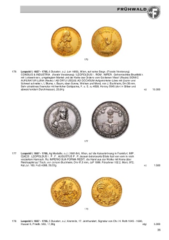 176 Leopold I. 1657 - 1705, 6 Dukaten, o.J. (um 1660), Wien, auf seine Siege. (Florale Verzierung)