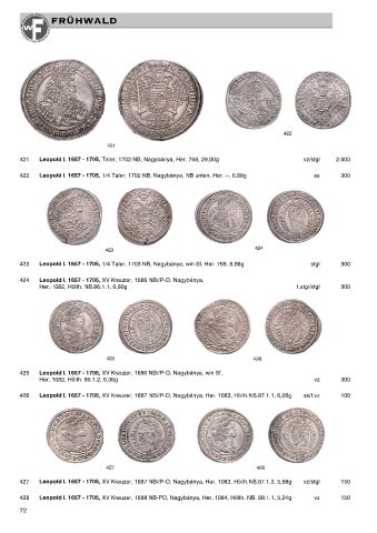 422 Leopold I. 1657 - 1705, 1/4 Taler, 1702 NB, Nagybánya, NB unten, Her. --, 6,88g ss 300
