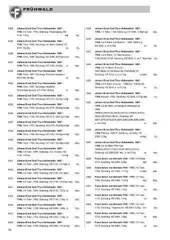 4348 Johann Ernst Graf Thun Hohenstein 1687 - 4365 Franz Anton von Harrach 1709 - 1727, 1/4 Taler,