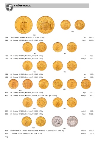 804 Lot 17 Stück 20 Korona, 1892 - 1909 KB, Kremnitz, Fr. 2056-2073, a. ca 6,79g f.vz/vz 3.500,-