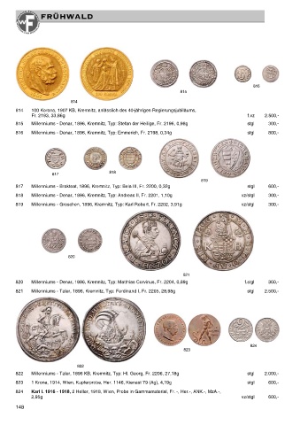 816 Millenniums Denar, 1896, Kremnitz, Typ: Emmerich, Fr. 2198, 0,34g stgl 800,-