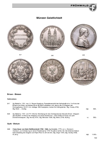 848 Ag Medaille, 1747, von P.P. Werner (Nürnberg) für das Domkapitel des Bistums Brixen. Wappen