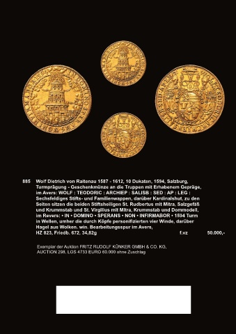 885 Wolf Dietrich von Raitenau 1587 - 1612, 10 Dukaten, 1594, Salzburg,