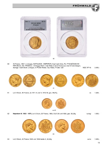 61 Lot 3 Stück, 40 Francs, 2x 1811 A und 1x 1812 M, ges. 38,67g ss 1.200,-
