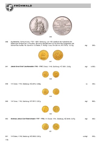 950 Andreas Jakob Graf Dietrichstein 1747 - 1753, 1/4 Dukat, 1751, Salzburg, HZ 2849, 0,87g stgl 800,-