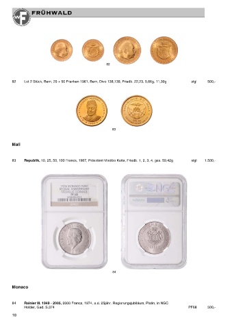 84 Rainier III. 1949 - 2005, 2000 Francs, 1974, a.d. 25jähr. Regierungsjubiläum, Platin, in NGC