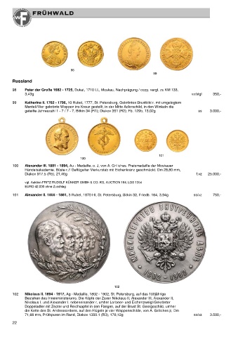 100 Alexander III. 1881 - 1894, Au - Medaille, o. J, von A. Griliches. Preismedaille der Moskauer