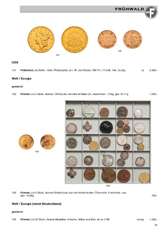133 Diverse, Lot 5 Stück, diverse Goldmünzen aus den Niederlanden, Österreich, Frankreich, usw,