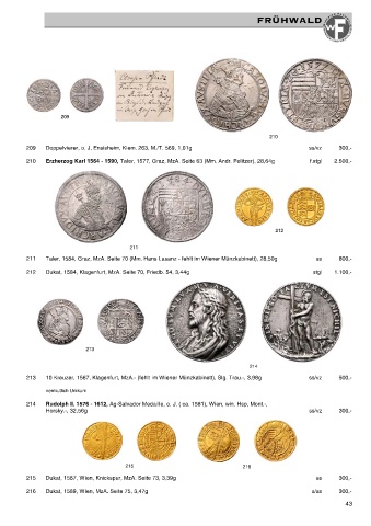 216 Dukat, 1589, Wien, MzA. Seite 75, 3,47g s/ss 300,-