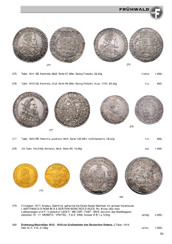 275 Taler, 1611 KB, Kremnitz, MzA. Seite 97 (Mm. Georg Fleisch), 28,20g f.vz/vz 1.000,-