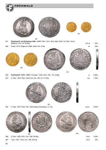 285 2 Taler, 1624, Wien, Her. 290a (dieses Exemplar), 57,12g ss/ss+ 2.000,-