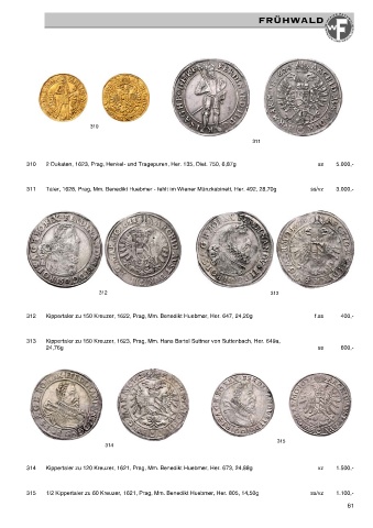 310 2 Dukaten, 1623, Prag, Henkel- und Tragepuren, Her. 135, Diet. 750, 6,87g ss 5.000,-