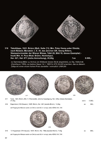 316 Talerklippe, 1621, Brünn (MzA. Seite 112, Mm. Peter Hema unter Olmütz,