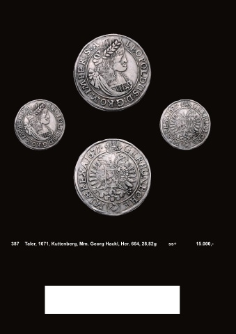 387 Taler, 1671, Kuttenberg, Mm. Georg Hackl, Her. 664, 28,82g ss+ 15.000,-