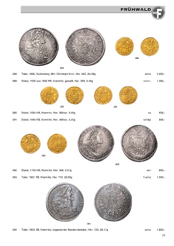 392 Dukat, 1702 KB, Kremnitz, Her. 368, 3,47g ss+ 800,-
